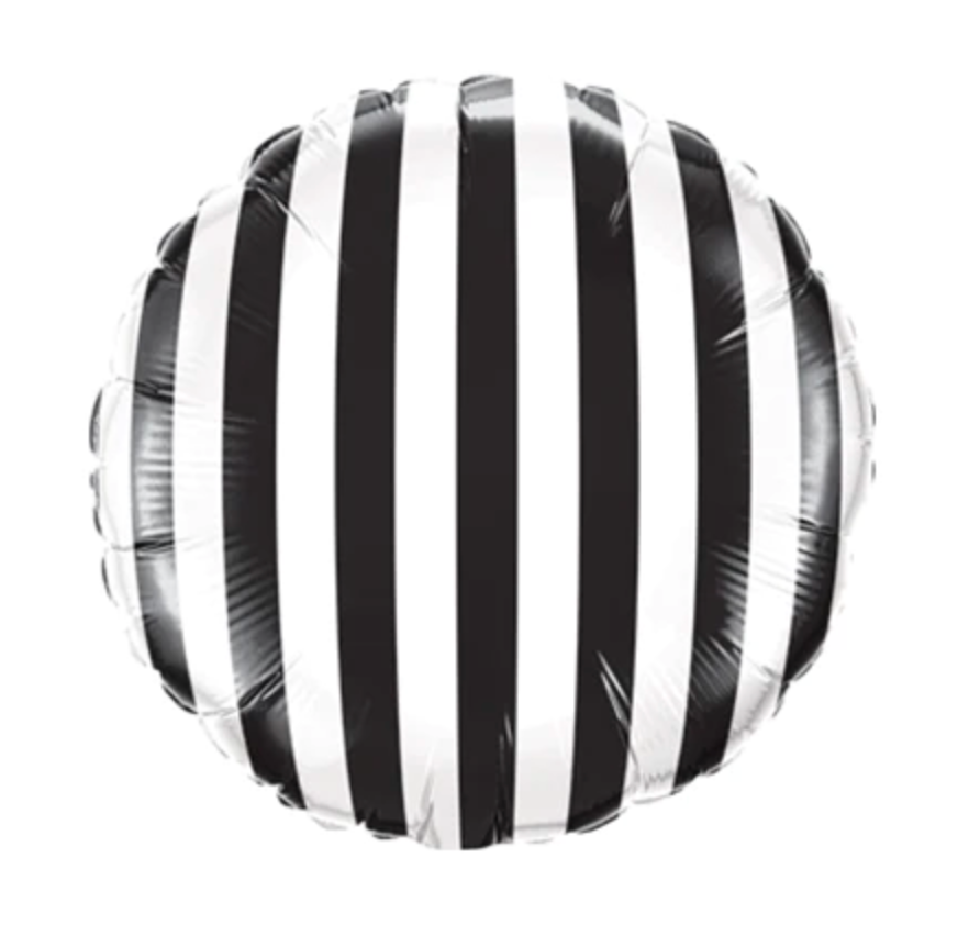 18" BLACK AND WHITE STRIPED ROUND BALLOON