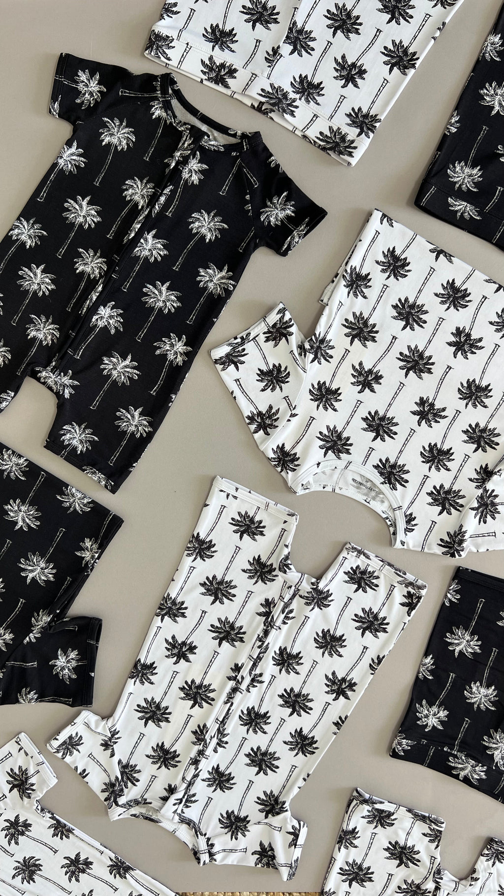 Bring the island breeze to your little one’s wardrobe with our Bamboo Shorty Romper | Palm Style Black.