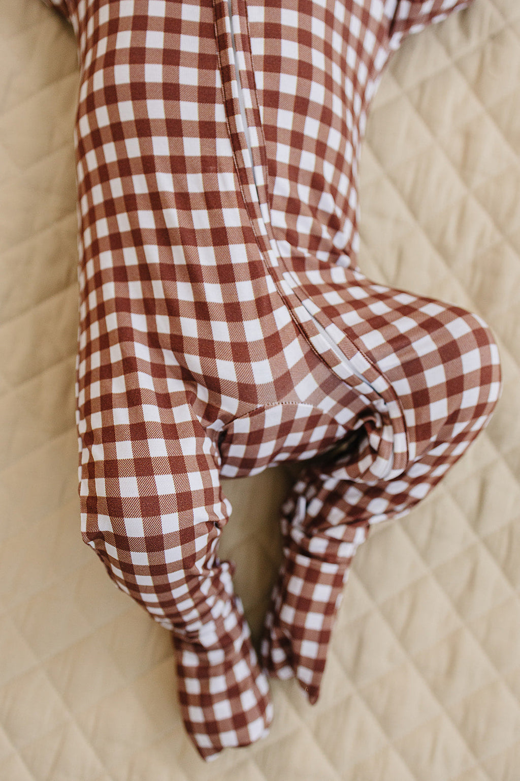 Sweet and timeless, the Chocolate Gingham blends vintage charm with modern comfort. The chocolate-toned gingham pattern makes this piece picture-perfect while keeping your little one cozy for all-day play.