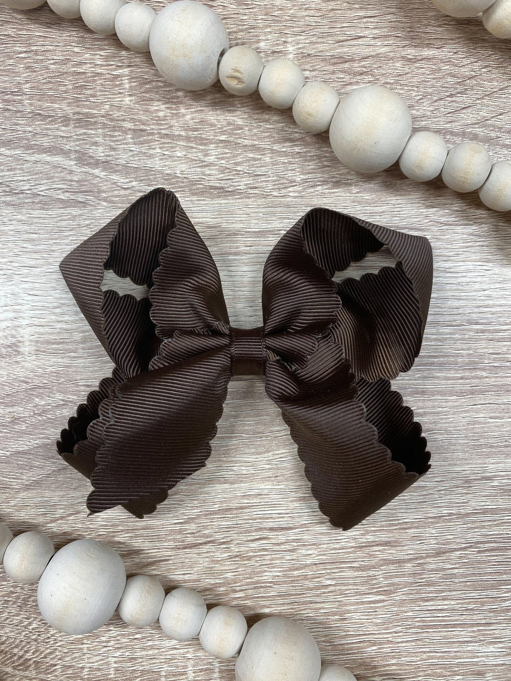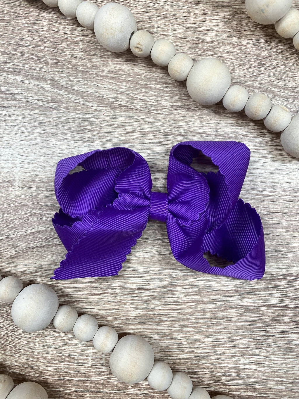 Add a touch of sweetness to your hair with our Scalloped Classic Size Bows! These bows come with a convenient alligator clip, making them easy to style and secure. Perfect for any occasion, these bows will add a charming flair to any outfit.