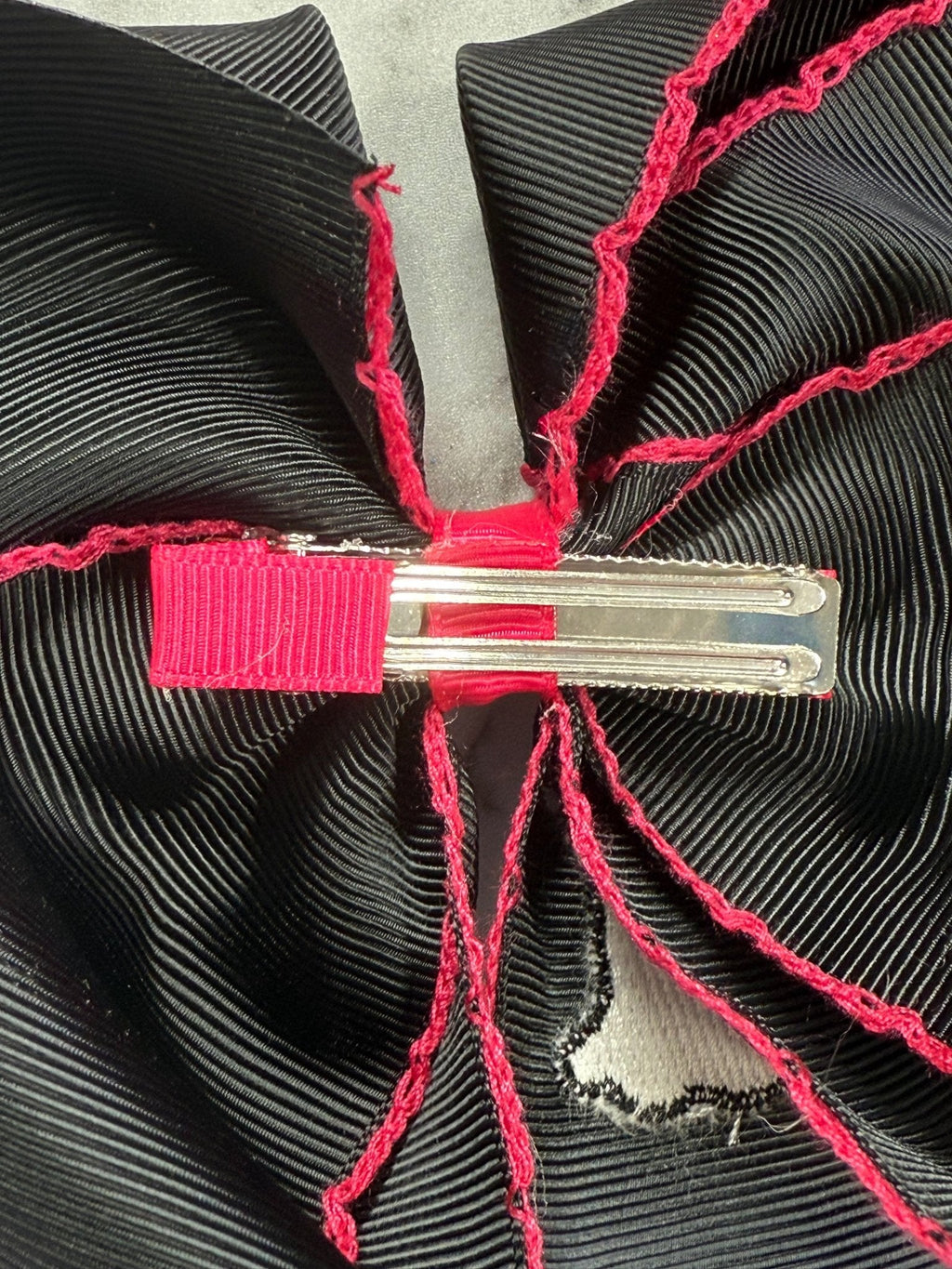 This Cute Ghost Embroidered Moonstitch Hair Bow brings a fun, spooky vibe to any look! Featuring an adorable ghost embroidery with a hot pink moonstitch edge, it’s the perfect playful accessory to brighten up your hairstyle and celebrate the season with a touch of whimsy!
