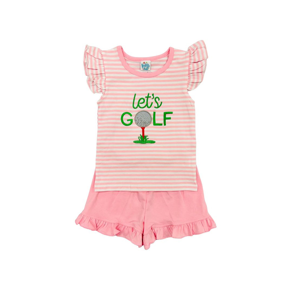 Funfetti Kids Pink Stripe Let's Golf Ruffle Short Set