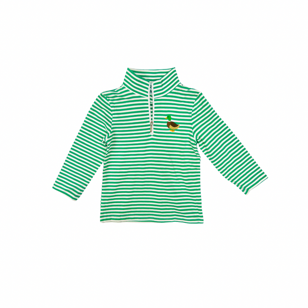 Hazel Blue Green Stripe Mallard Embroidered Pullover