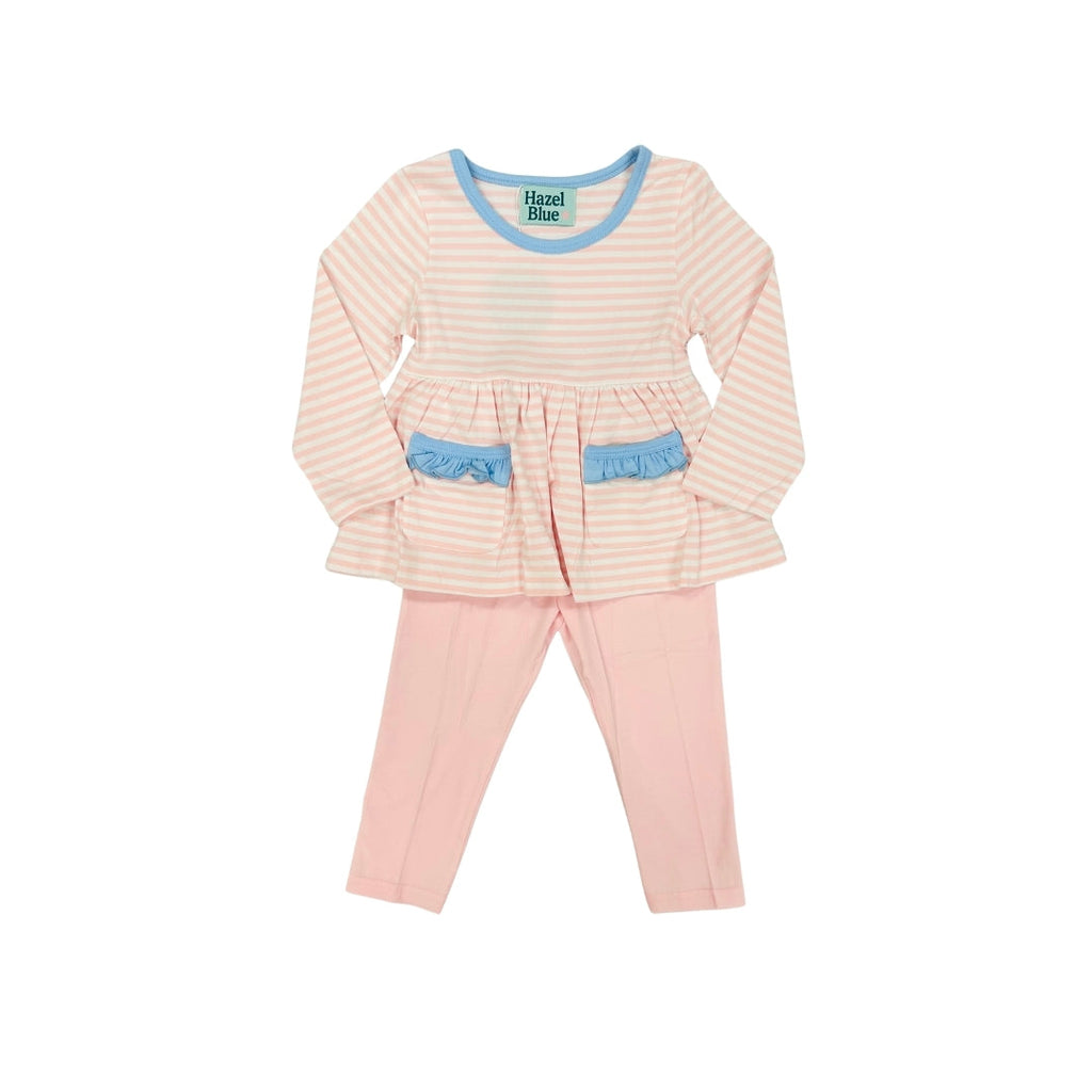 Hazel Blue Pink Stripe Legging Set with Ruffle Pockets