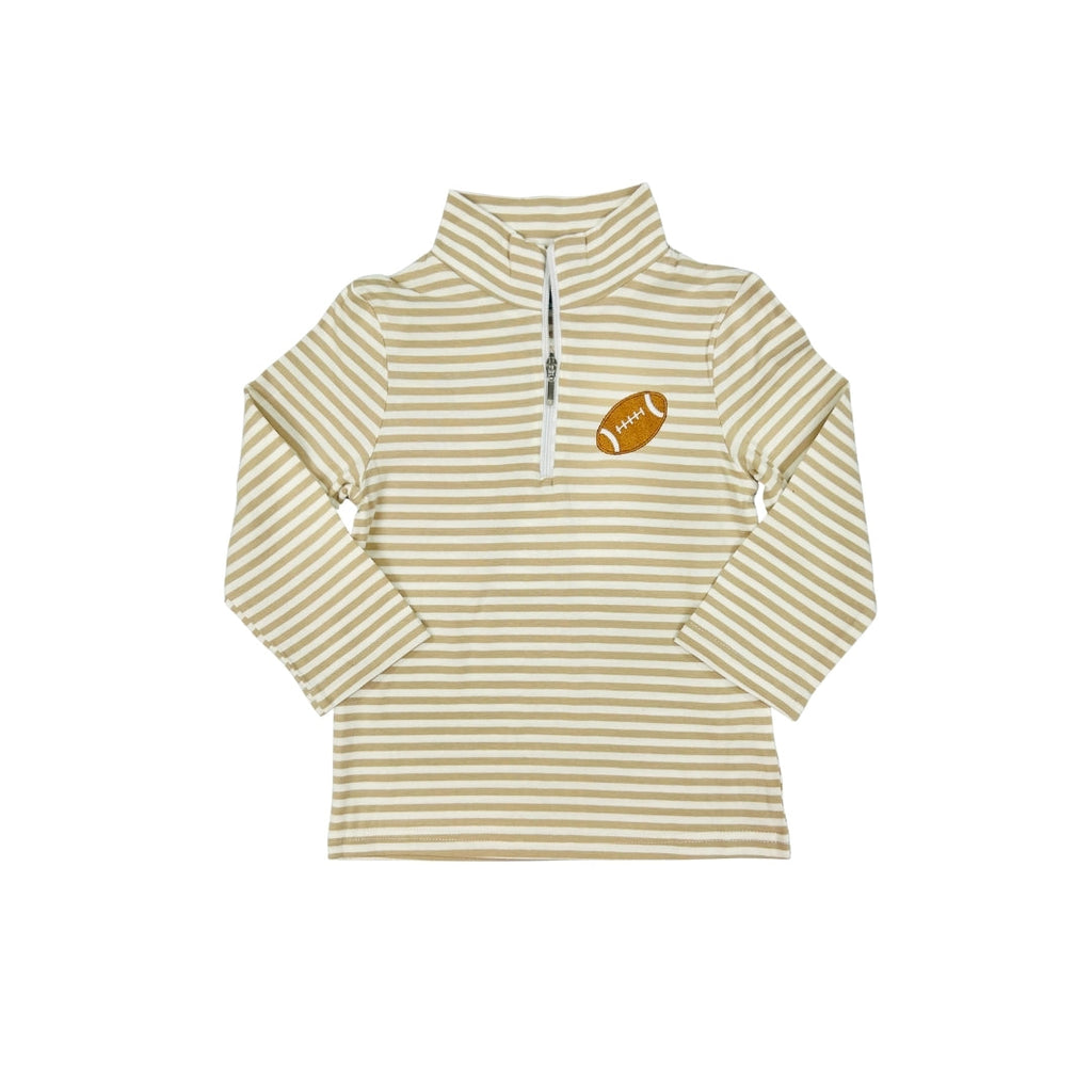 Hazel Blue Tan Stripe Football Embroidered Pullover
