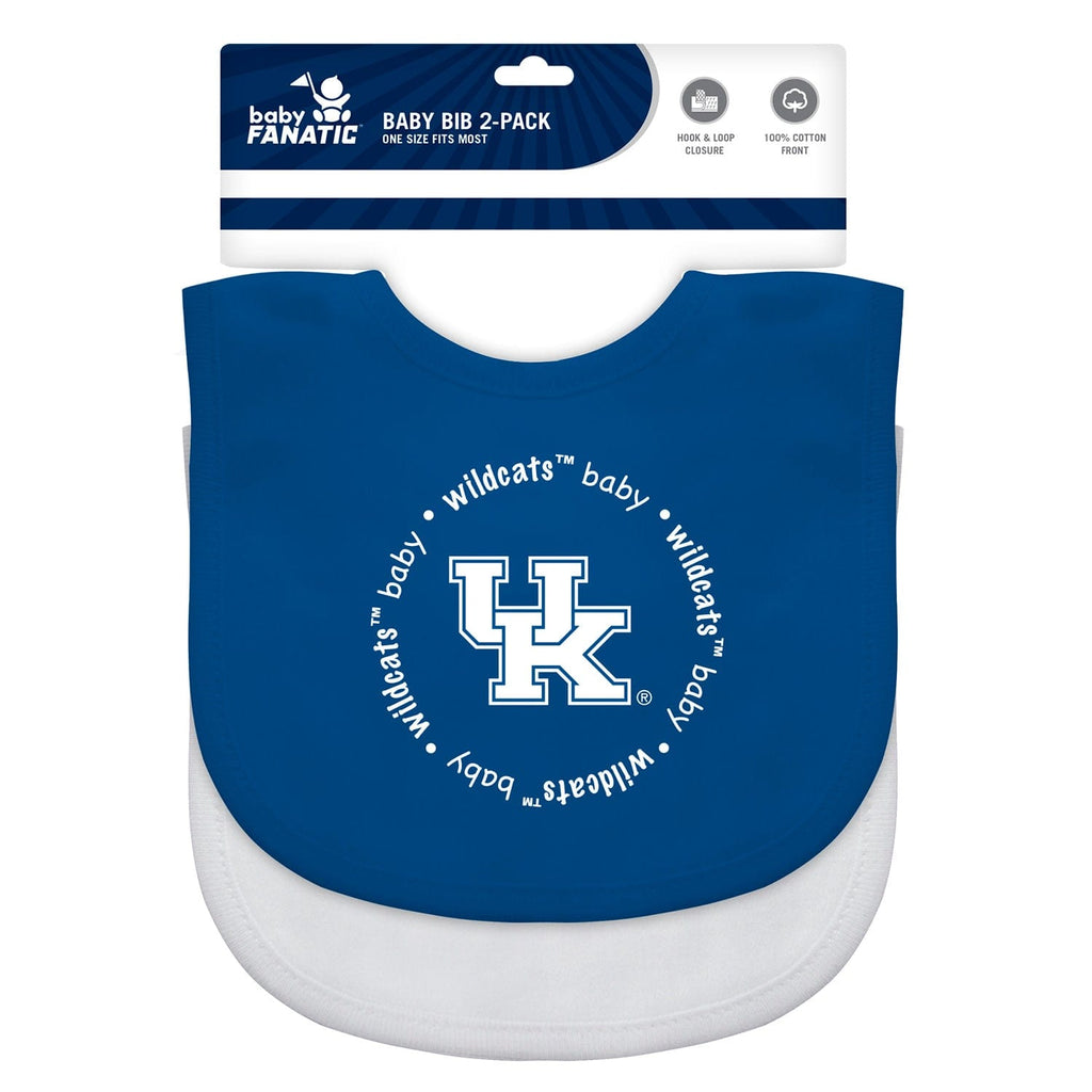This MasterPieces Kentucky Wildcats NCAA BabyFanatic Unisex Bibs 2-Pack is a must-have for every parent. These officially licensed bibs feature a 100% cotton front adorned with a beautifully embroidered team logo, showcasing your baby's team spirit from an early age. The polyester back ensures that spills and stains stay away from your child's adorable outfit. With a convenient hook and loop closure, these bibs are easy to put on and take off. Cleaning is a breeze as they are machine washable with cold water and like colors. Designed to fit most infants, these bibs grow with your little one throughout their fandom journey.