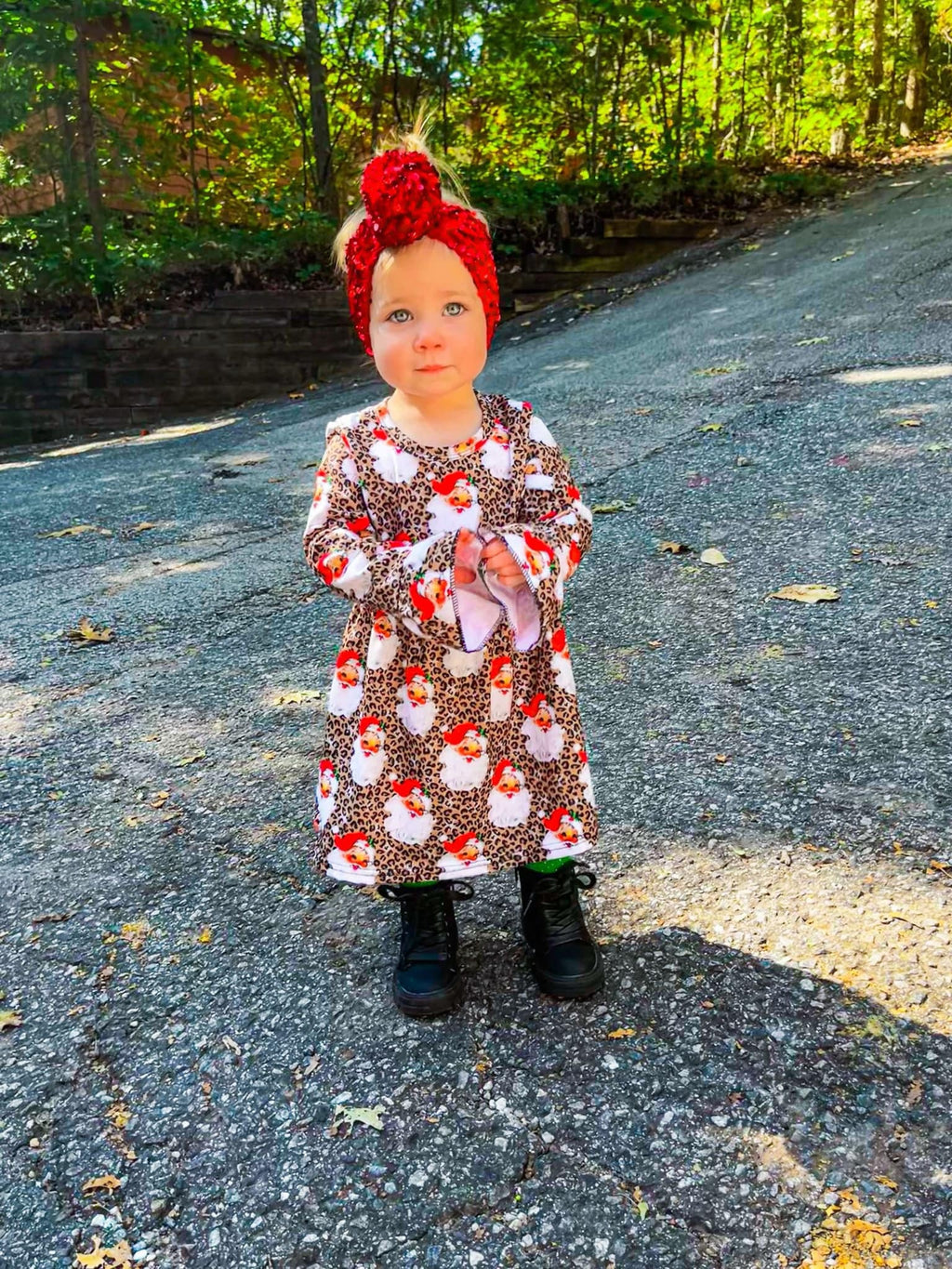 Leopard santa bell sleeve dress