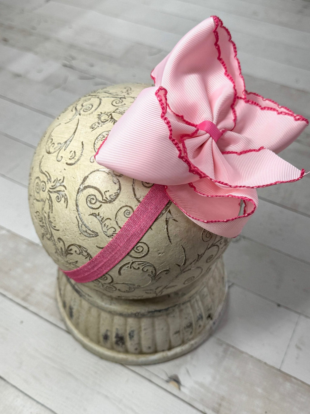 Add a touch of whimsy to any outfit with this Light Pink with Pink Moonstitch Bow Headband. Soft and comfortable, it’s perfect for playful days and special occasions alike. Let your little one shine with this sweet and stylish accessory!