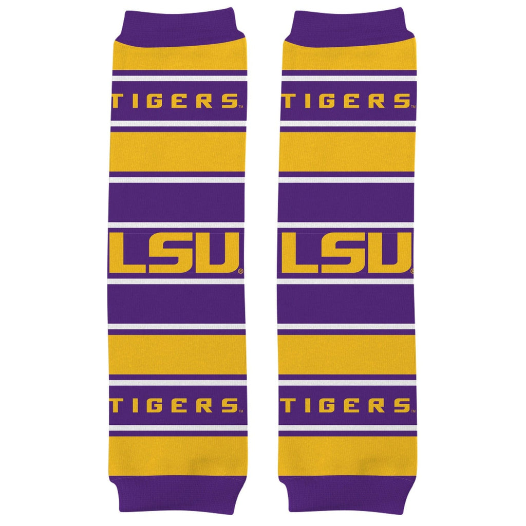 Looking for a fashionable way to keep your little NCAA fan's legs warm and protected? Look no further than our officially licensed unisex LSU Tigers infant, baby, and toddler Leg Warmers! Made from a blend of 80% Cotton, 15% Polyester, and 5% Spandex. Our baby leg warmers are perfect for keeping your child's knees warm while they learn to crawl or during the next tailgate. Great for children from 9-35 lbs. The openings are elastic allowing them to stay in place and put on and take off. Plus, there is no need to remove them for diaper changes.