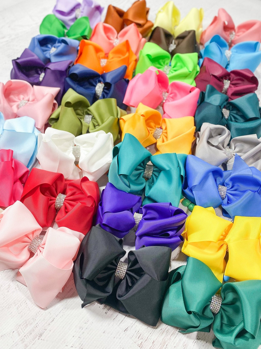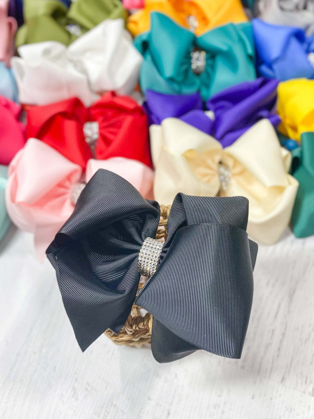 Get oversized style with these Rhinestone Center Knot Hair Bows! These oversized bows feature a dazzling rhinestone center and a fun knot design, perfect to make a statement with any outfit. Available in a variety of colors, so you can add some sparkle to your hair anytime, anywhere.