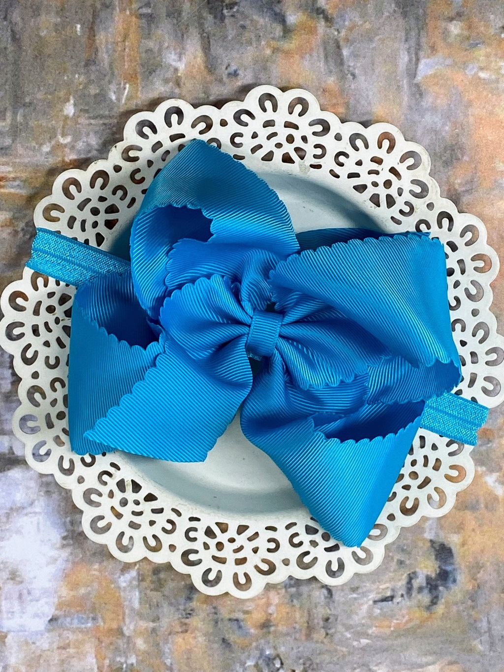 One of our top selling baby headbands is now available in this larger size! This headband is truly exceptional. Its scalloped detailing and timeless bow size bring a whimsical element to any ensemble. As a comfortable and chic accessory, it is a necessary addition for any stylish individual. Prepare to make a statement and receive praise with this one-of-a-kind headband! One of our top selling baby headbands!