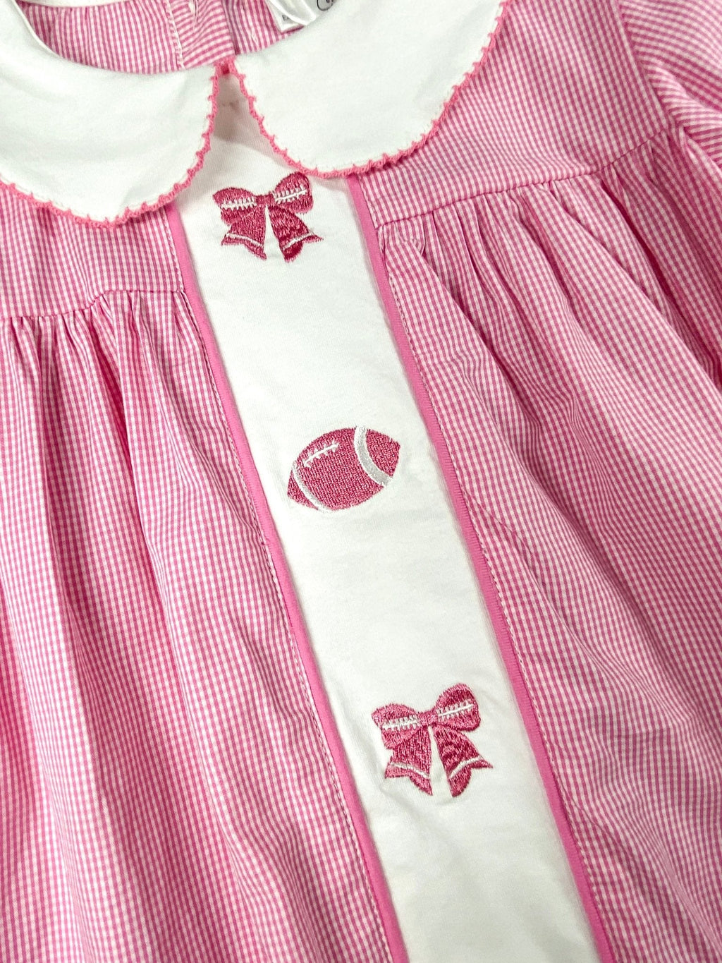 Touchdown in style! 🏈💗 Your little one can cheer on her favorite team while showing off her girly side in our Pink Bows & Footballs Girls Dress—the perfect blend of sporty and sweet!