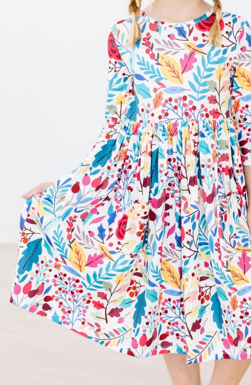 Scoop back and ballet neckline make getting dressed a breeze. Full skirt makes twirling extra fun.
