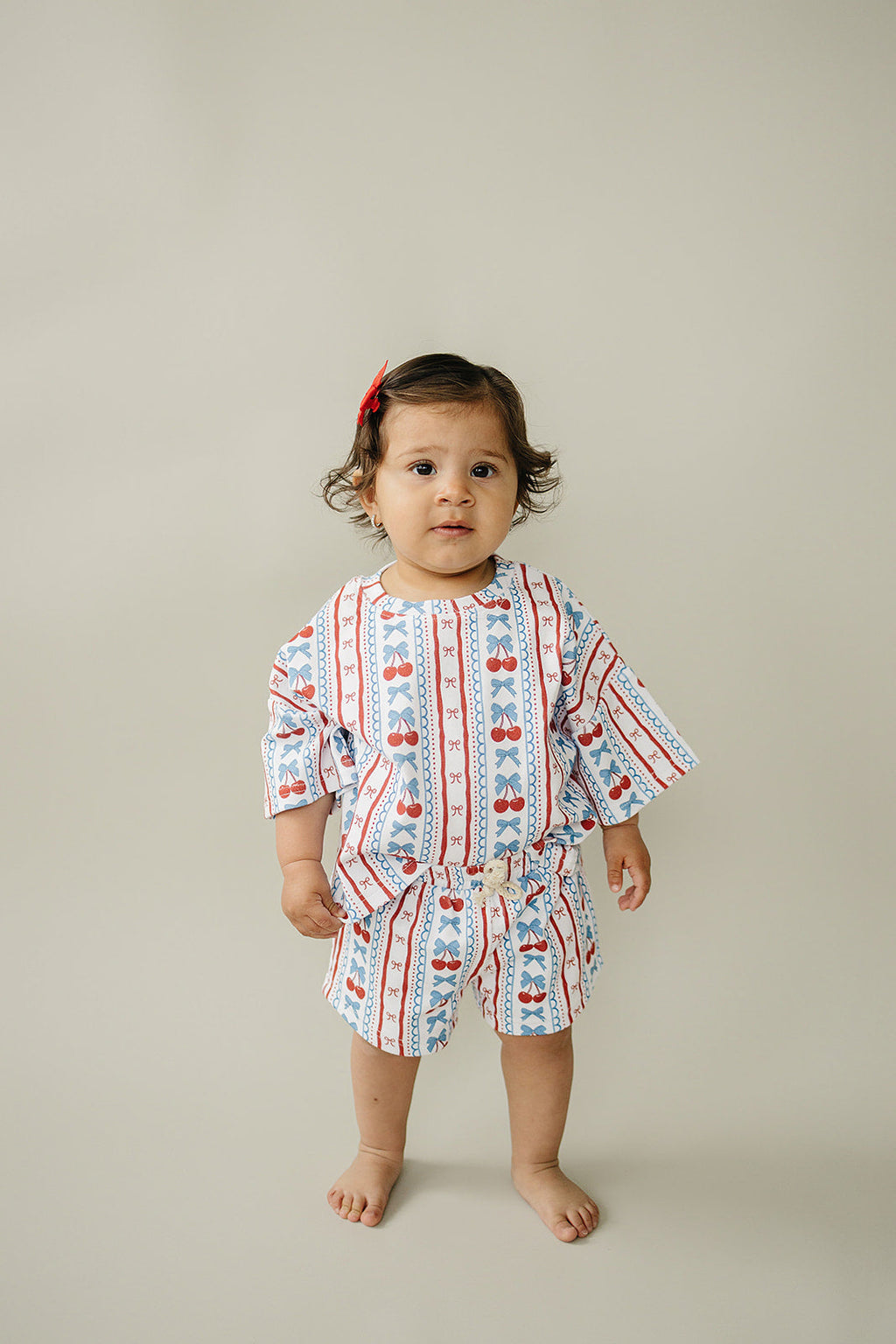 Let your little one stay cool and cute in the Shorts Set | Checkered Cherry — a go-to for sweet summer style!