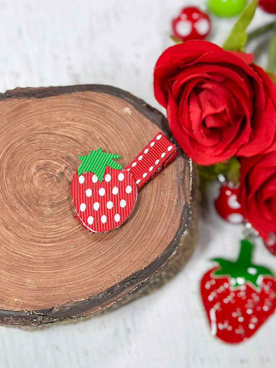 Introducing the quirky and playful Strawberry Clippie! This fun accessory adds a touch of sweetness to any outfit with its vibrant strawberry design. Keep your hair in place while expressing your unique style. A berry-licious addition to your collection!