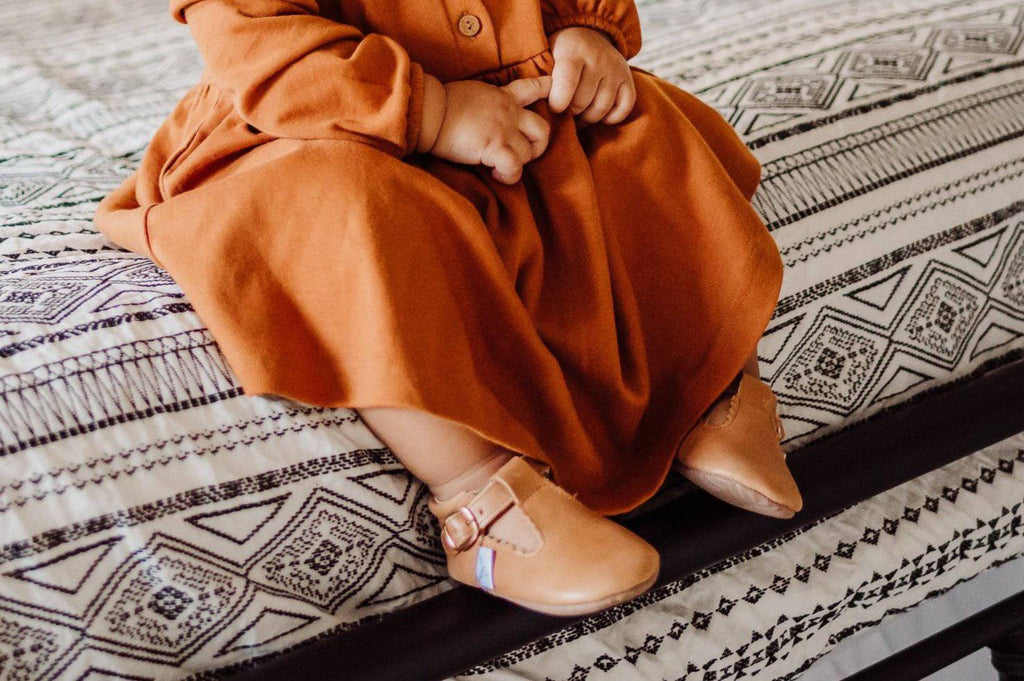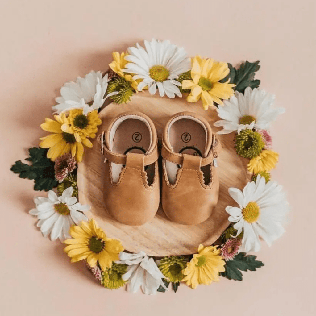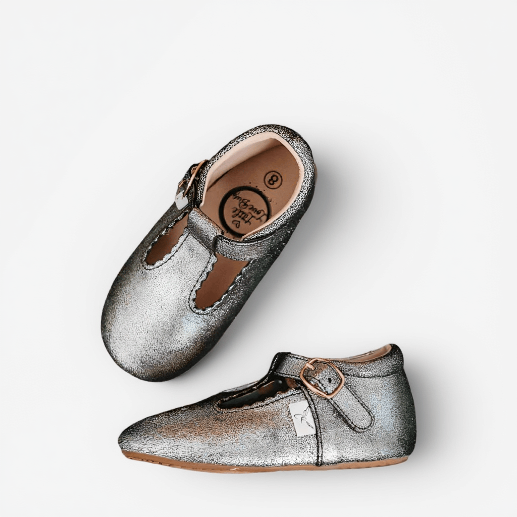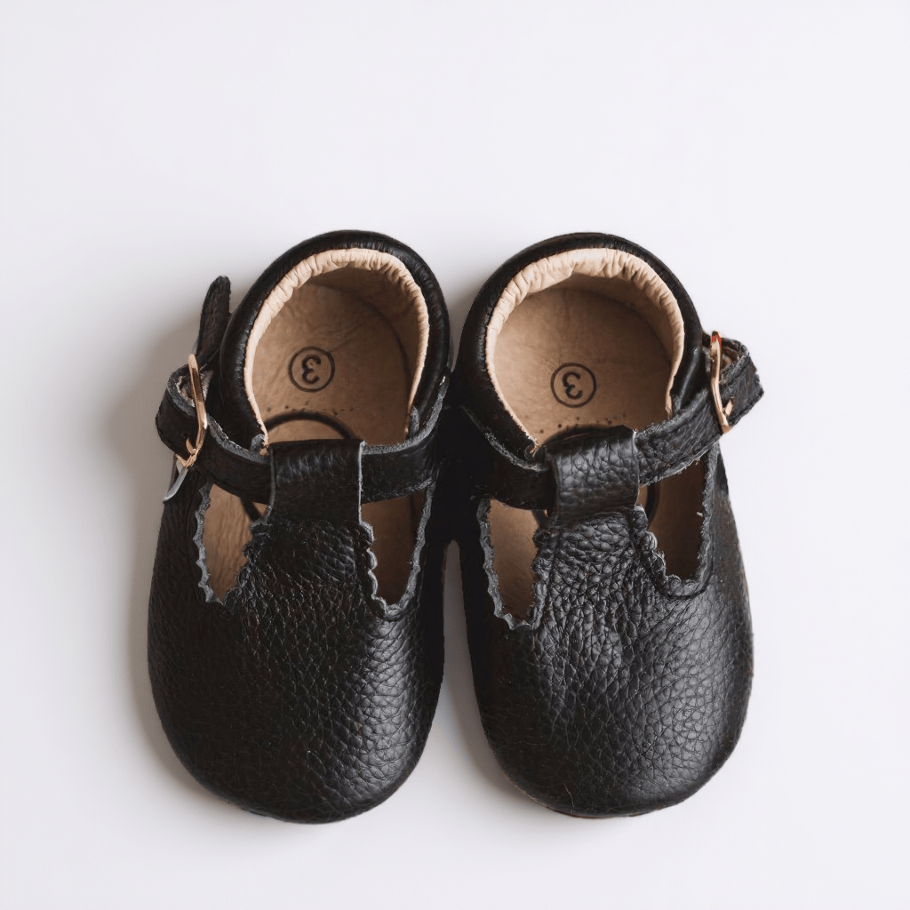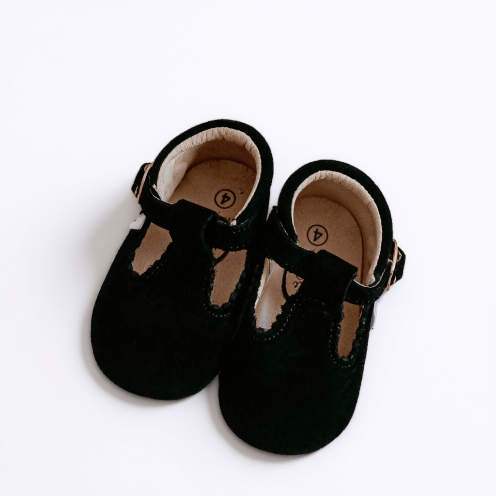 Little Love Bug Company's T Bars blend style and support for your child’s developing feet. These Montessori-approved scalloped shoes feature an elastic entrance and adjustable buckle for easy on and off.
