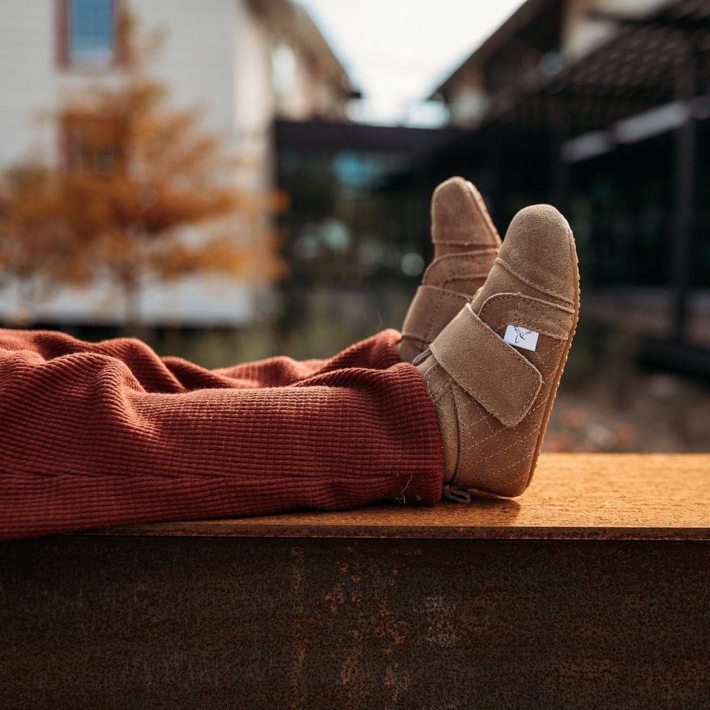 The Wyatt boot became an instant classic from the moment it was released. Along with the traditional barefoot sole that Little Love Bug is known for, the Wyatt features a large velcro strap and wide opening making it easy for your independent little one to do it themselves. The warm, cozy lining and patchwork detail on the heel adds the extra touch of class that has made this boot a must have.